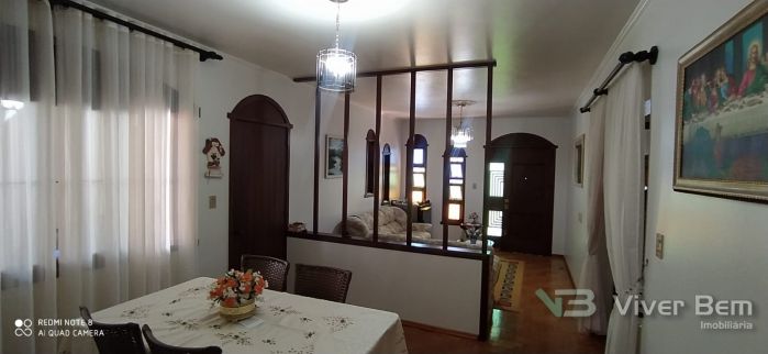 3 dormitórios, água quente, Split em todos dormitórios, área de lazer, piscina com aquecimento solar, alarme, portão eletrônico, 2 salas de estar, sala de jantar, cozinha, 2 banheiros sociais, 1 lavabo, área de serviço, churrasqueira, box/garagem para 4 carros, salão de festas, lareira, despensa, pátio fundos e frente cercado.Área privativa : 215m²