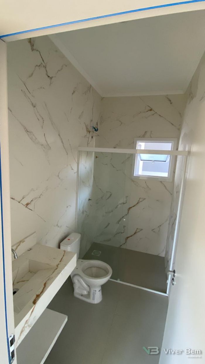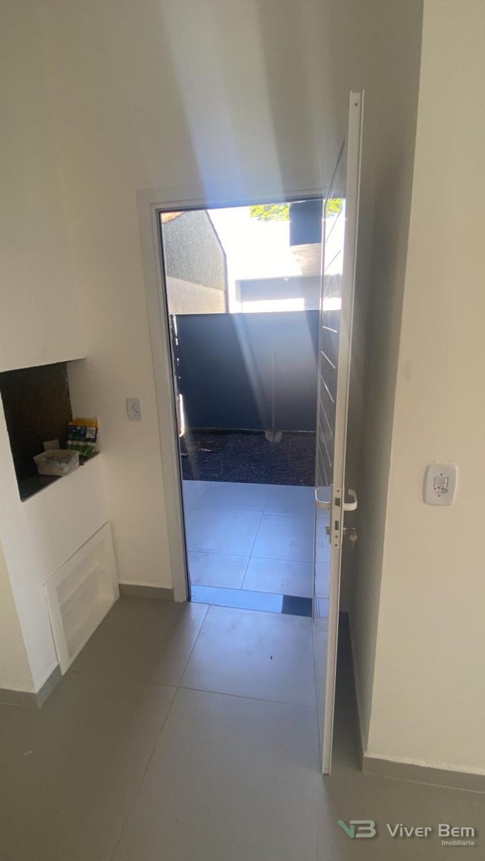 Casa Geminada Nova, medindo 50m2, 2 dormitórios, sala, cozinha, banheiro, área de serviço, com estacionamento.
