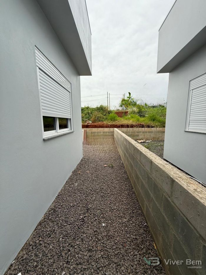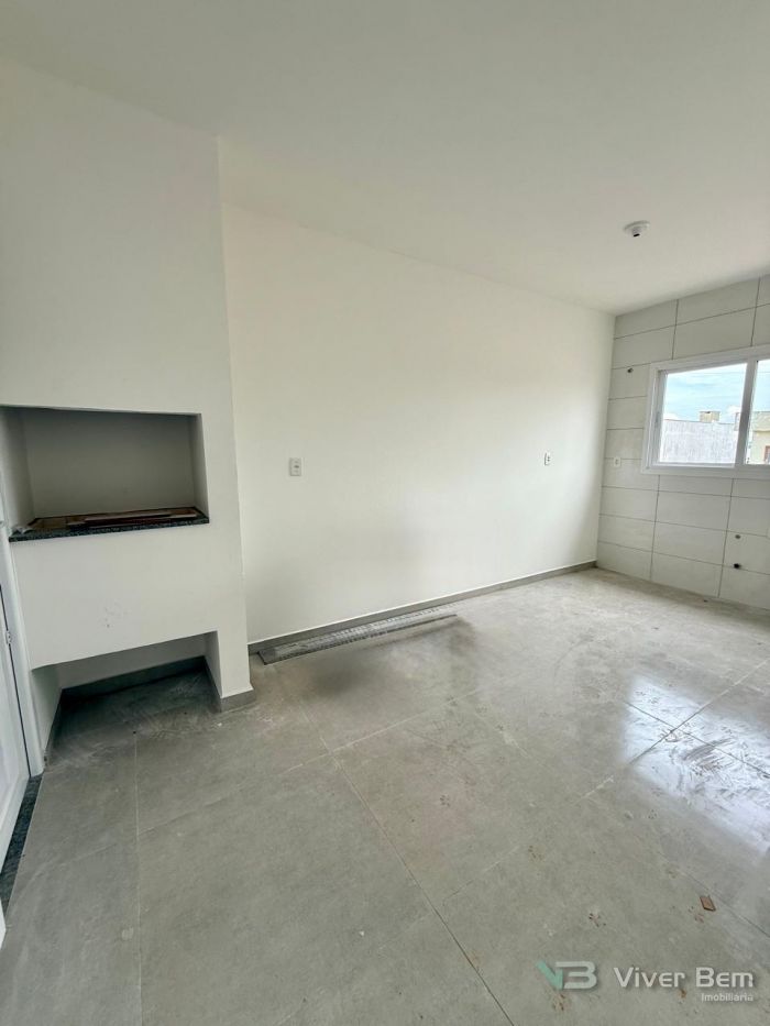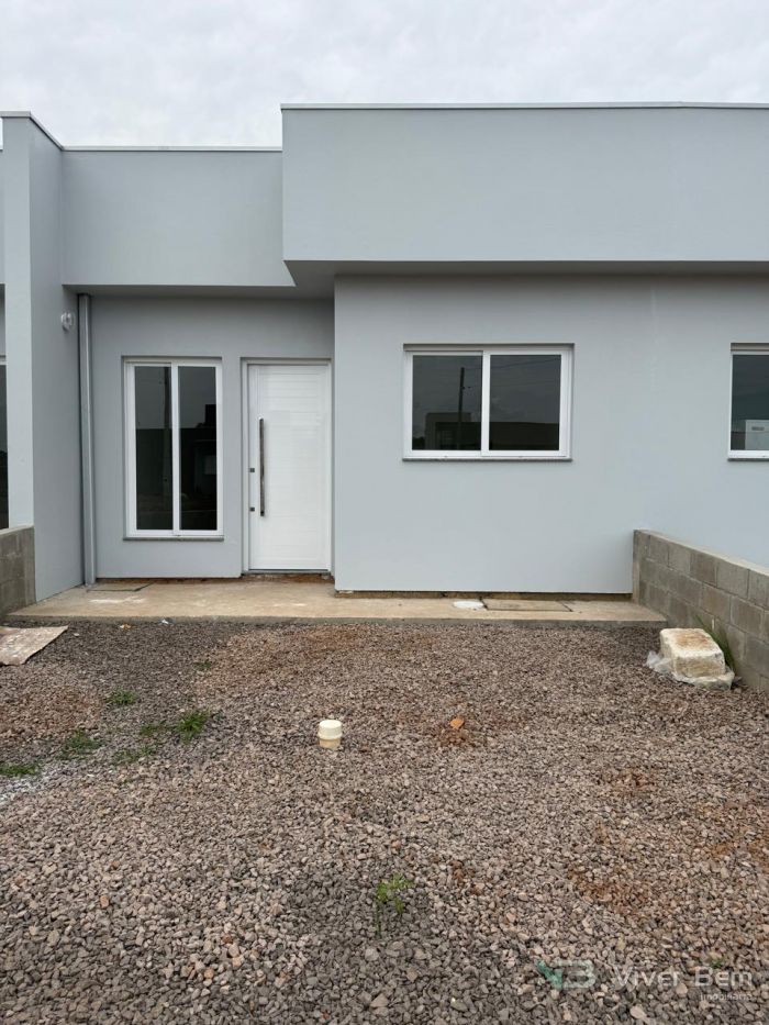Lindos Geminados Novos na cidade de Estrela, com 60,85m2, em terreno de 129,25m2, de 2 dormitórios, sala, cozinha, banheiro, área de serviço, pátio nos fundos, e estacionamento.