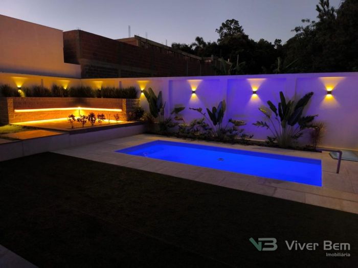 Exclusividade e Design de Alto Padrão Living Imponente: Pé-direito duplo, lareira e mezanino sofisticado. Lazer Completo: Espaço gourmet com churrasqueira e piscina. Comodidade: Lavabo interno e banheiro social exclusivo para a piscina. A síntese perfeita entre engenharia de precisão, luz natural e a sofisticação que você merece! Tecnologia Geoid: Esquadrias de alta performance com telas para insetos. Infraestrutura: Aquecimento via boiler e espera para coifa. Acabamento: Porcelanato premium e projeto luminotécnico (fachada, jardim e piscina). Ala Íntima: 3 suítes (incluindo 1 master)