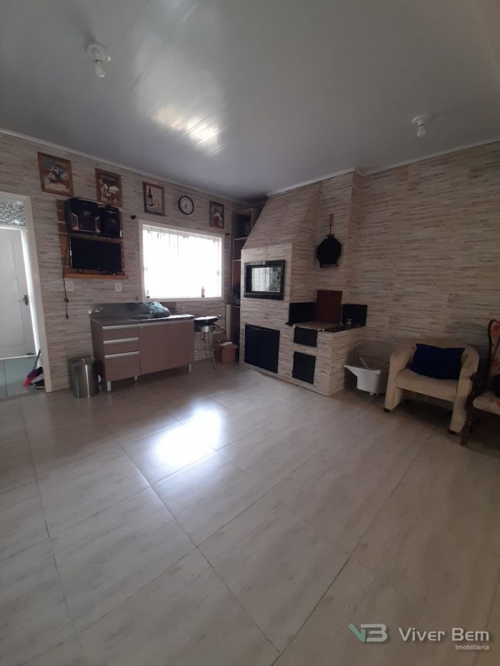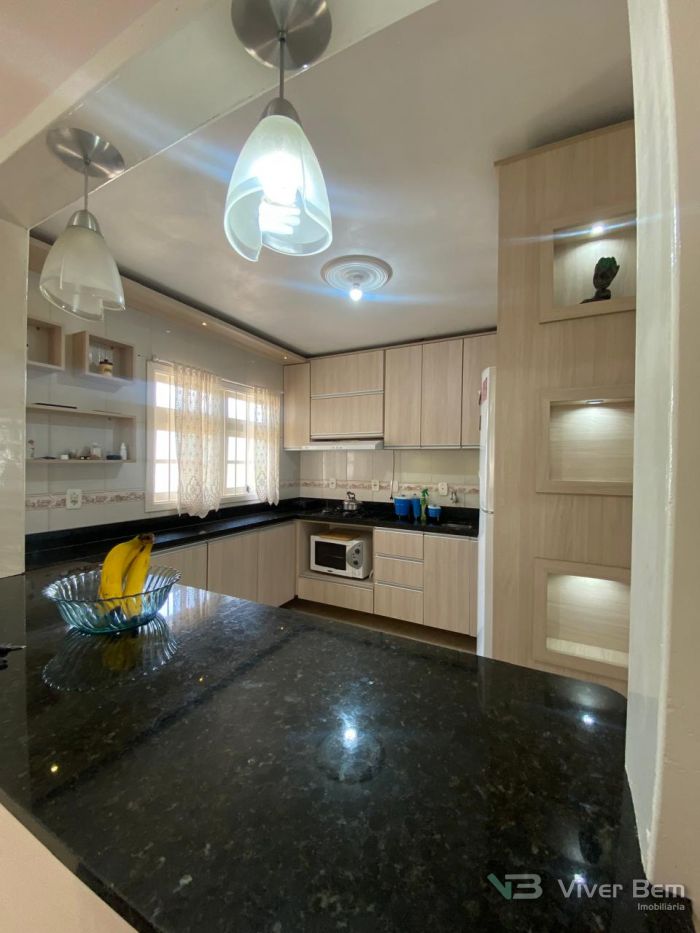 Casa de 95m², 2 dormitórios, 2 banheiros, sala e sala de jantar, cozinha estilo americana, toda em porcelanato, ficam os móveis planejados, quiosque c/ churrasqueira externa, garagem com área gourmet e churrasqueira interna, pátio com jardinagem pronta, toda murada e cercada com portão