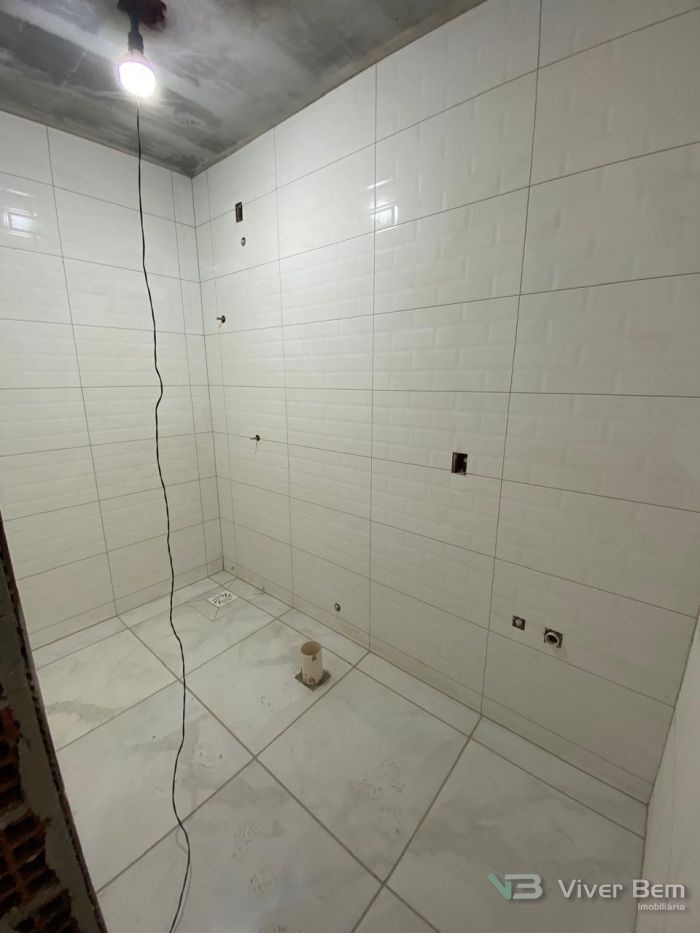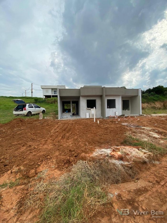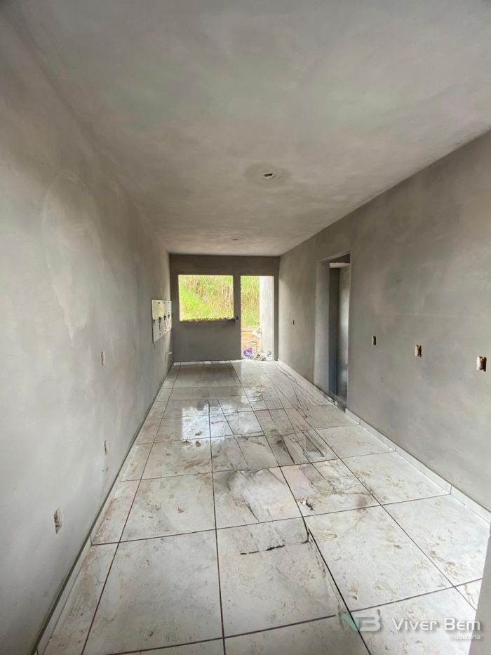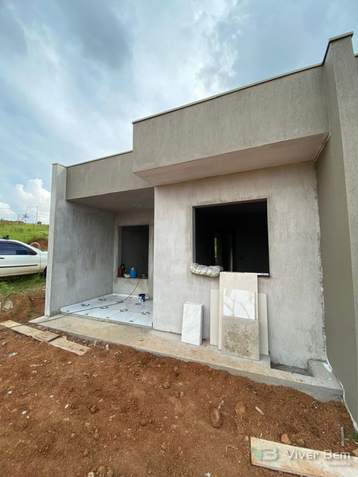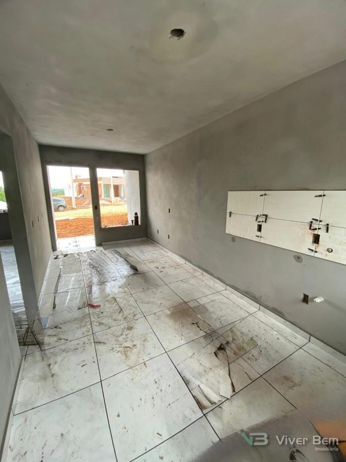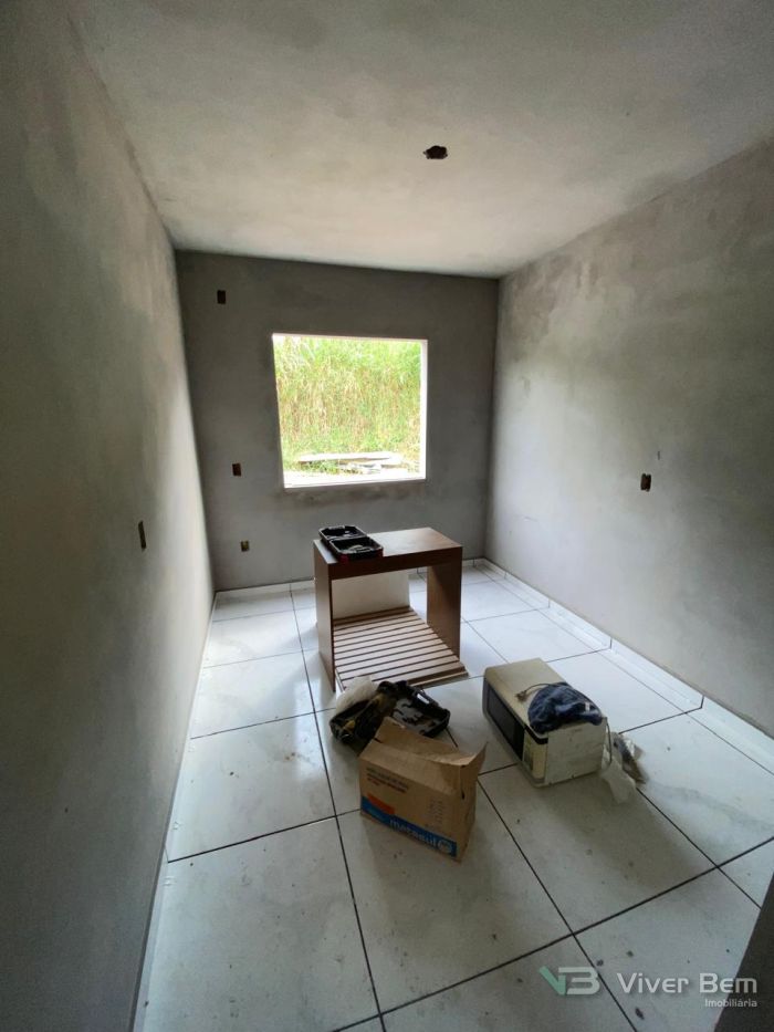 Casa Geminada Nova em fase final de acabamento, medindo 50,00m2, com 2 dormitórios, sala e cozinha, banheiro, área de serviço coberta, com pátio na frente e nos fundos.