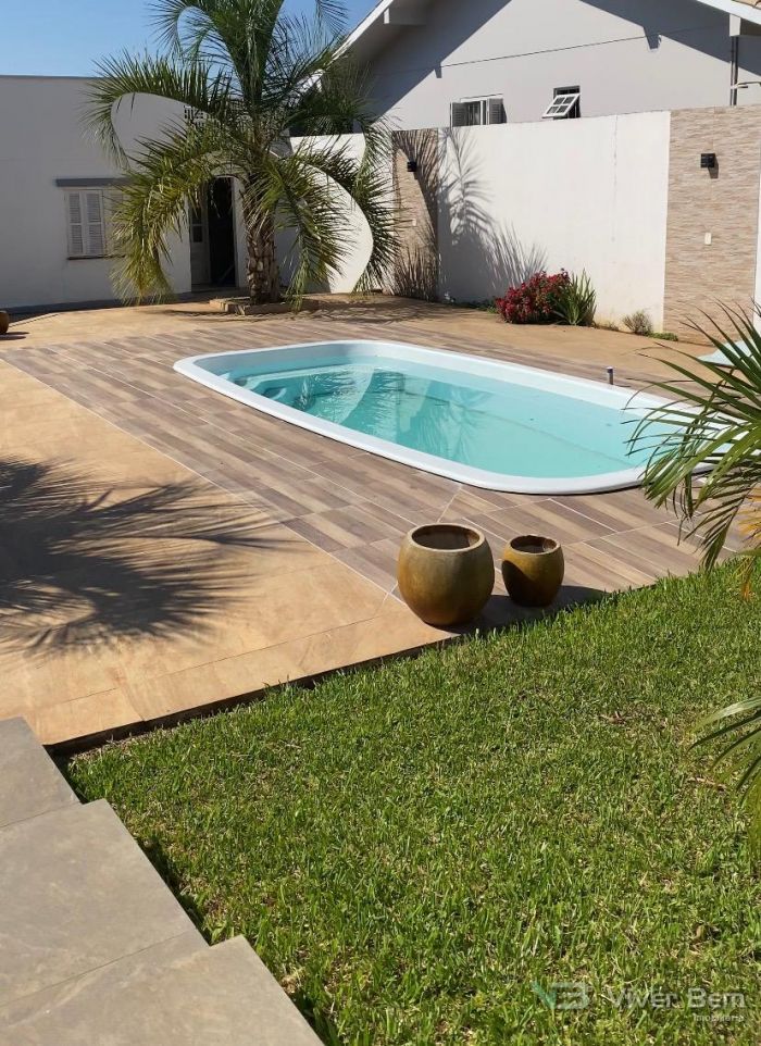 Casa ampla com m², cozinha estilo americana, sala ampla com lareira, 3 dormitórios sendo 1 suíte (não acabada), banheiro social, lavanderia, amplo quiosque todo fechado com churrasqueira, piscina aquecida, placa solar, amplo pátio todo murado com portão eletrônico. Cota de inundação 27,30m