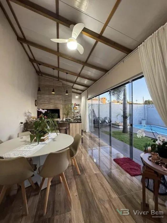 Casa com 3 dormitórios, sala estar, jantar, cozinha, lavanderia, despensa, 2 banheiros, sala leitura, quiosque, piscina. Lindo, vale conferir. Ficam móveis sob medida